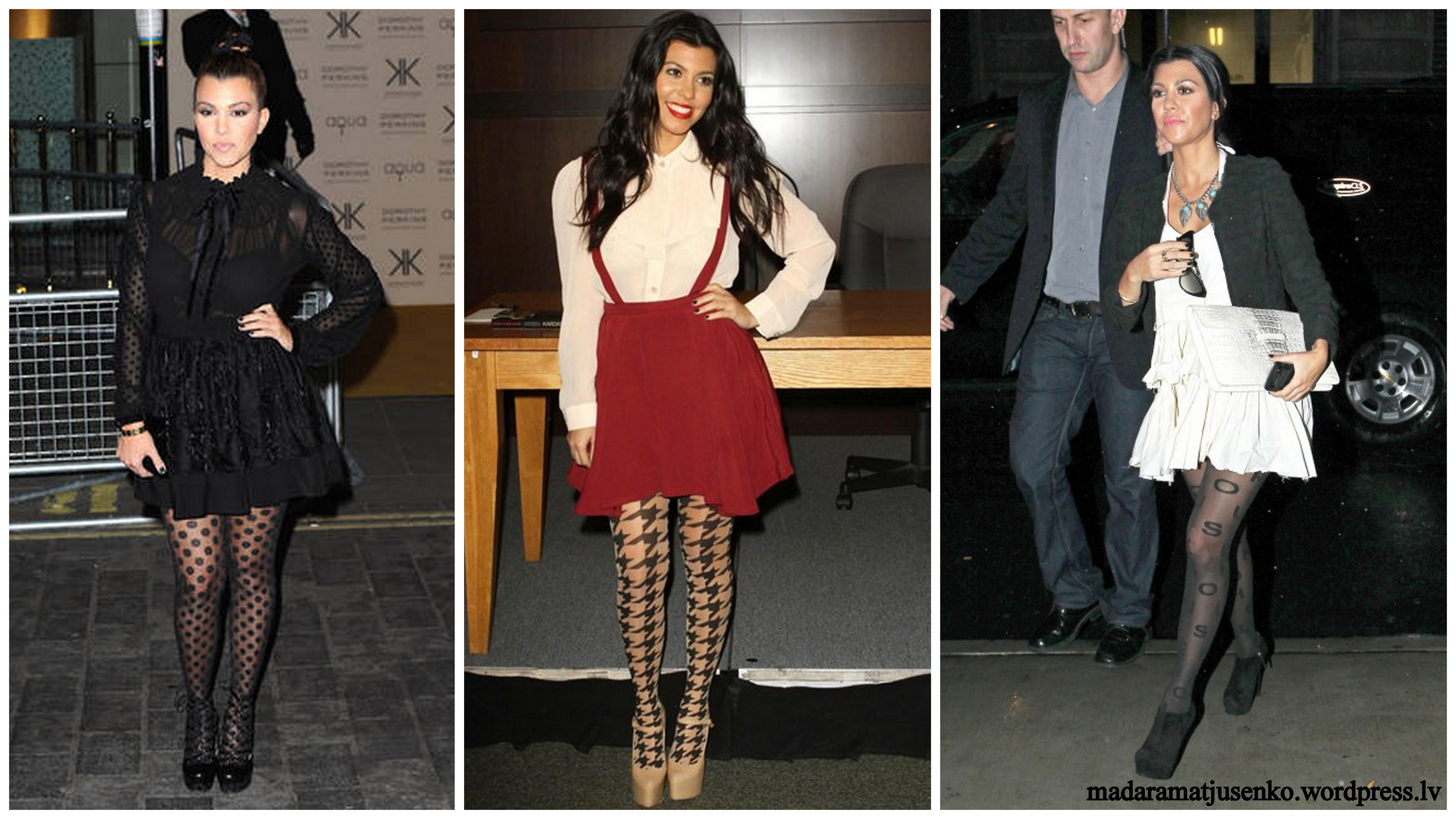 Interesantas un modernas zeķubikses – varētu pat teikt, ka tas ir viens no Kortnijas stila nezūdošiem elementiem. Viņa vienmēr cenšas izvēlēties modernas, interesantas zeķubikses, kas kopējam tēlam liks izskatīties jautram un patiešām interesantam un rotaļīgam. Tā vietā lai izvēlētos klasiskas melnas zeķubikses, Kortnija izvēlas zeķubikses ar punktotu rakstu, zigzagrakstu un alfabēta burtiem.