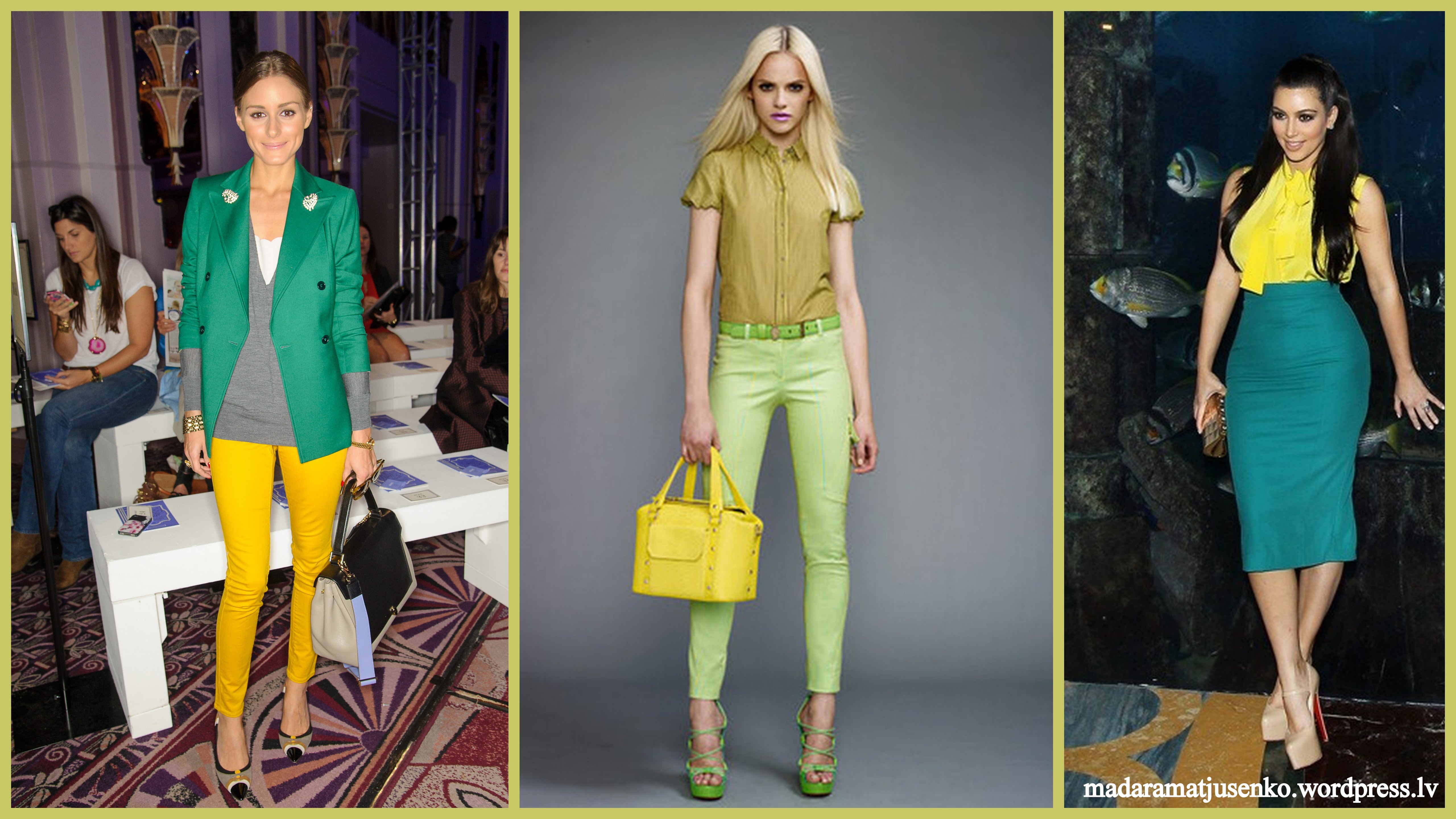 Sāksim jau ar to, ka dzeltenais ir saules krāsa, iekļaujot to savā apģērbā tu jutīsies patiešām labi un tas garastāvoklis visas dienas laikā būs lielisks. Bet zaļais tonis nedaudz atsvaidzinās koptēlu, piešķirot ļoti modernu un tajā pašā gaumīgu koptēlu. Ieteiktu tev uzmanīties no zaļā un dzeltenā krāsu miksēšanas pārāk daudz, jo kas par daudz – tas par skādi. Un ieteiktu tev arī neizvēlēties ļoti raibas apdrukas dzeltenā un zaļā tonī, jo kā jau zināms raibas apdrukas padara apjomīgāku un pievērš uzmanību katram mazajam trūkumam.